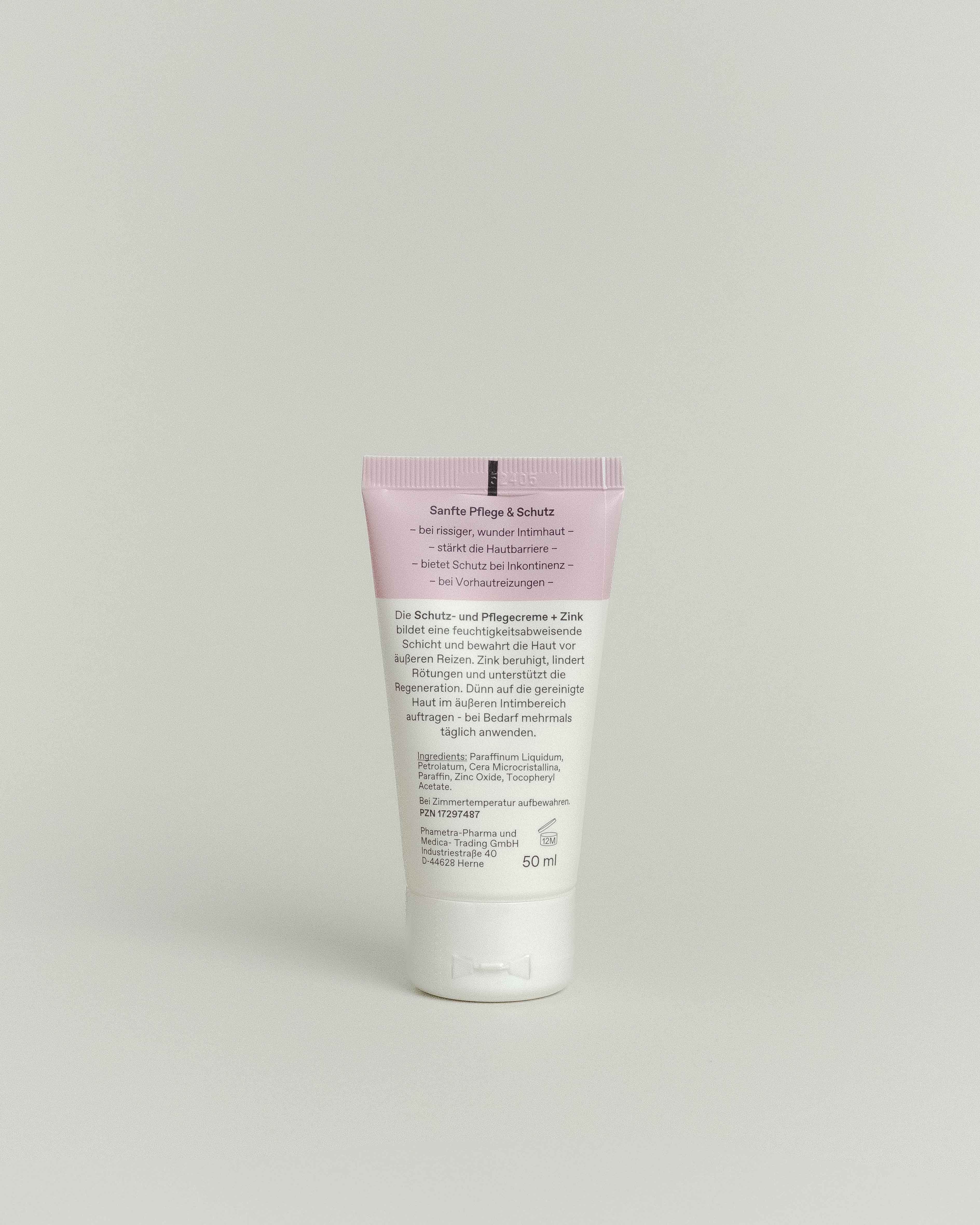 Die Schutz- und Pflegecreme + Zink bildet eine weiche, feuchtigkeitsabweisende Isolationsschicht und schützt so die Haut vor äußerlichen Reizen.
